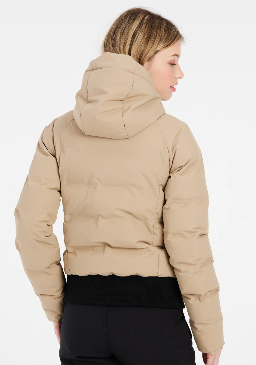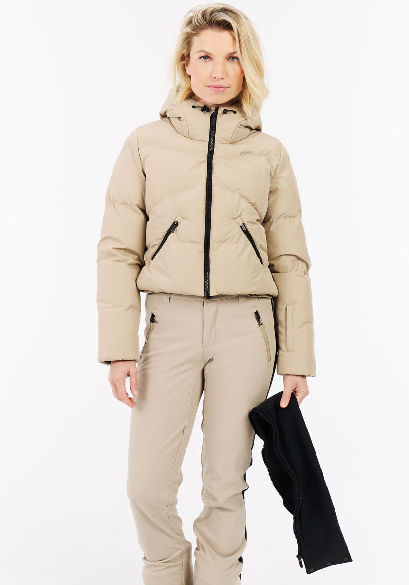The PRTALYSUMI ski and snowboard jacket by Protest is the stylish, eco-friendly addition to your ski wardrobe this winter. Part of our PVRE Green series, the PRTALYSUMI is partly made of recycled materials and features a PFC-free, 10K water-repellent finish. The quilted, single-colour design is chic and elegant, as is the drawstring on the fixed hood. The PRTALYSUMI has got your back on the slopes thanks to the handy goggle pocket, lift pass pocket and waist gaiter. The ski and snowboard jacket comes in a regular fit with a short length, adding a chic touch. Ticking all the technical boxes, the PRTALYSUMI’s 10g breathability lets out excess moisture, keeping you nice and dry during your ski adventures. The inner cuffs with thumb hole and zippered pockets are super practical.